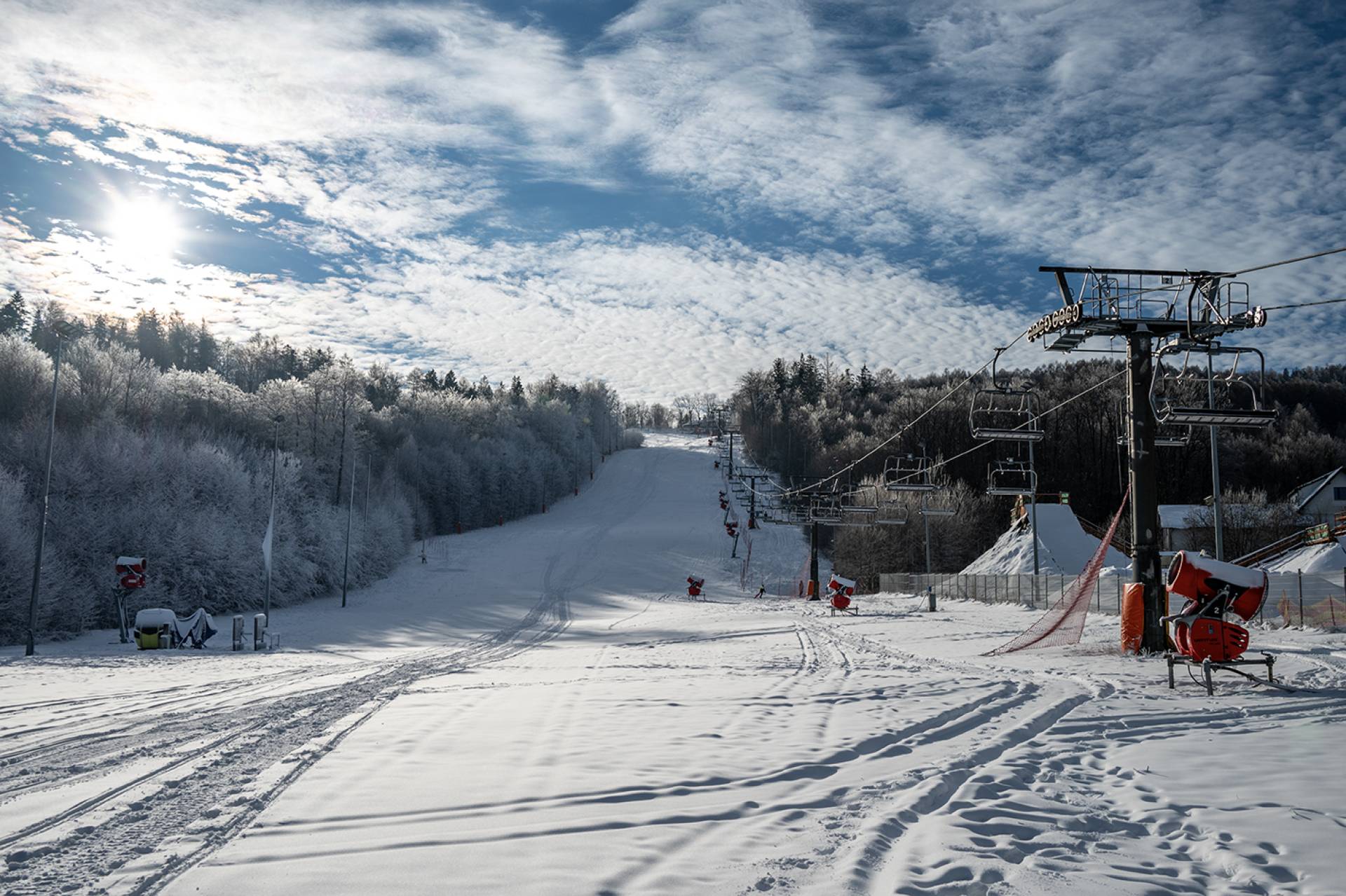 Stok jest oświetlony, naśnieżany i ratrakowany.