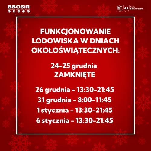 Informujemy o zmianach w funkcjonowaniu naszych obiektów sportowych w okresie Świąt Bożego Narodzenia oraz Nowego Roku. Prosimy o zapoznanie się z harmonogramem pracy Pływalni „Troclik” oraz lodowiska.
