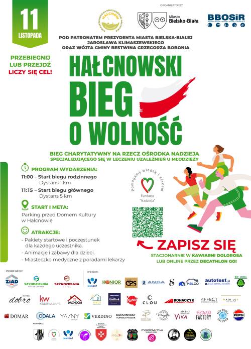 11 listopada odbędzie się Hałcnowski Bieg o Wolność, którego celem jest wsparcie Fundacja Zapobiegania i Resocjalizacji Uzależnień „Nadzieja” prowadzącej Katolicki Ośrodek Wychowania i Terapii Młodzieży.