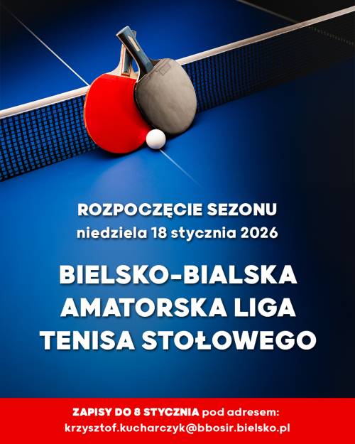 Informujemy, że zebranie kapitanów drużyn Bielsko-Bialskiej Amatorskiej Ligi Tenisa Stołowego przed startem rozgrywek sezonu 2026 zostało zaplanowane na: 📅 poniedziałek, 12 stycznia 2026 r.