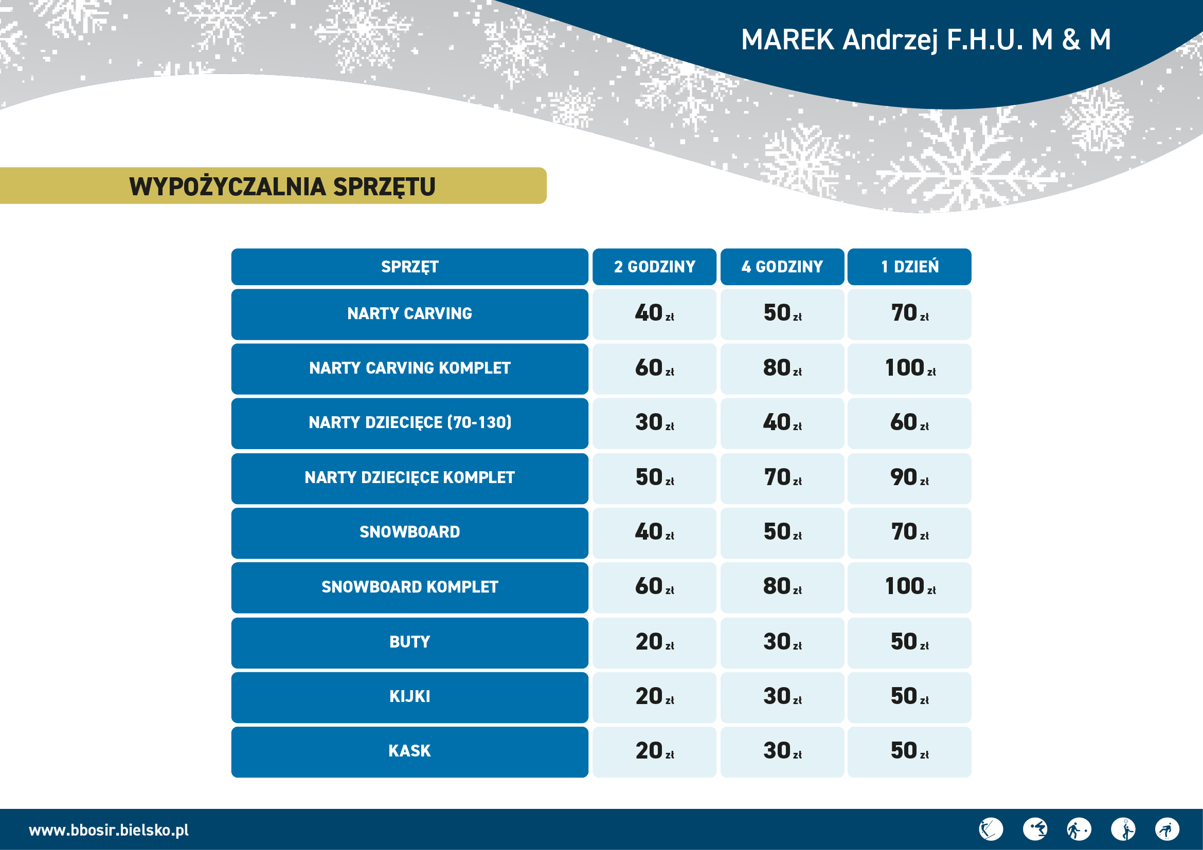 **Cennik wypożyczalni sprzętu**